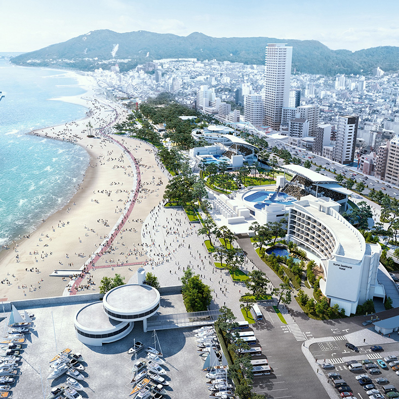 須磨海岸エリアの活性化 2023年11月9日 開園から30年以上が経つ須磨海浜水族園の建て替えを機に、Park-PFI制度を活用し、須磨海浜公園エリア全体の再整備を進めています。2023年9月にカフェレストランやスポーツ用品店などのにぎわい施設「松の杜ヴィレッジ」が先行オープンし、2024年6月には神戸須磨シーワールド・海浜公園が全面開業する予定です。