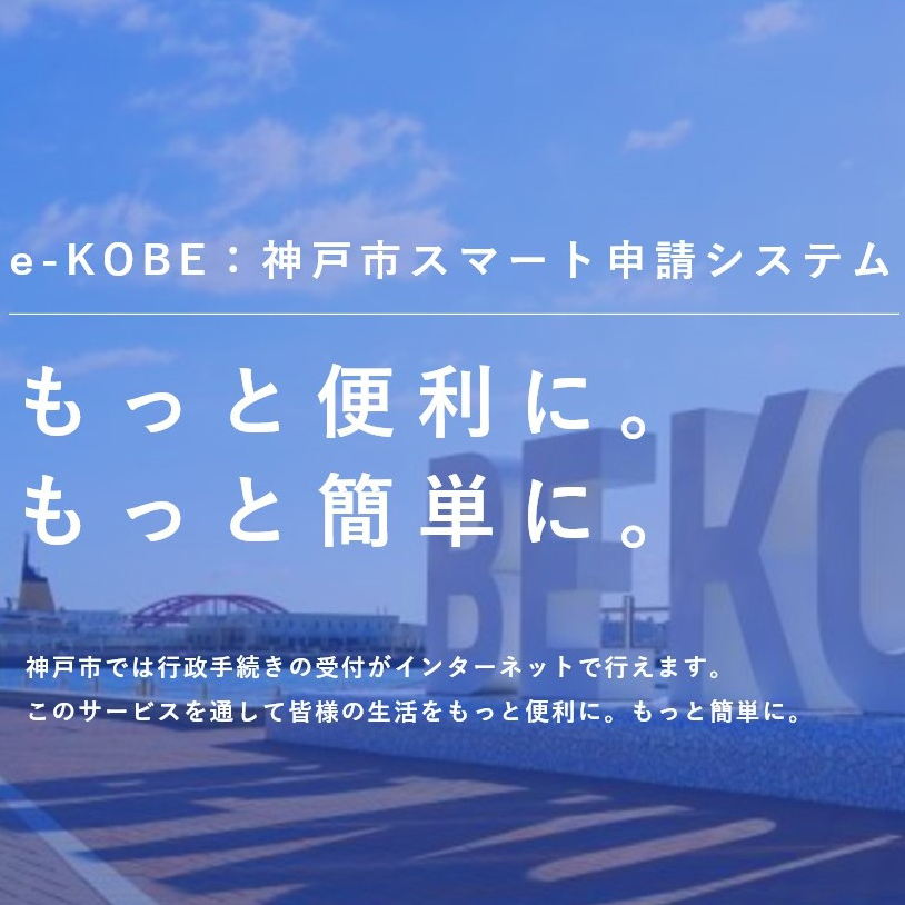 e-KOBE 申請システム 2023年11月1日 書面・押印・対面主義などのアナログ慣行を見直し、行政手続きの積極的なICT化の推進により、将来にわたって市民サービスの維持・向上を目指す「スマート自治体」への転換を進めています。2021年7月に構築した神戸市スマート申請システム「e-KOBE」を活用し、 2025年度中に来庁不要な申請手続の割合70%を目指しています。(2022年度末 52%)
