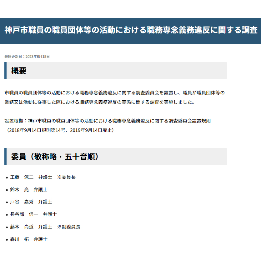 適正な労使関係の確立(ヤミ専従の根絶等) 2023年11月1日 2018年に組合役員の職務専念義務違反である「ヤミ専従」の問題が発覚しました。第三者委員会による調査、報告を受け、適正な労使関係にむけた市役所改革を進めました。管理職によるガバナンス強化、風通しの良い組織風土の構築を図っています。